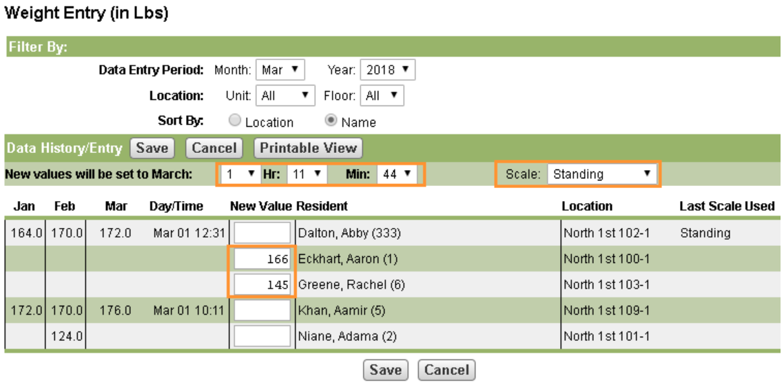 Documenting Weights and Vitals for Multiple Residents