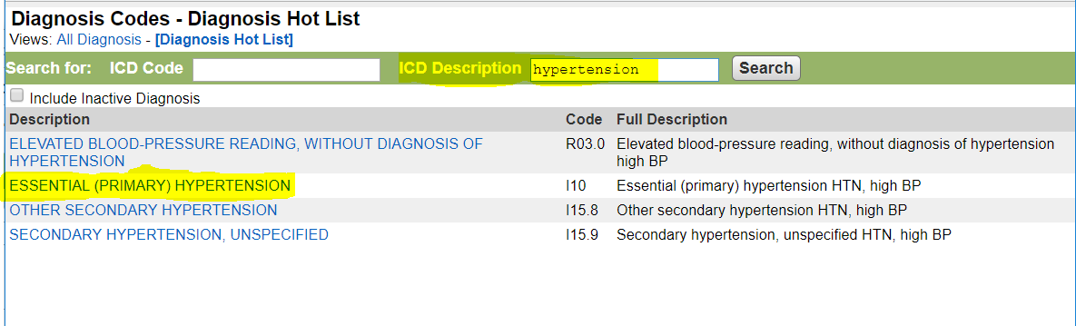 - Code - Type information or click the search icon. The Diagnosis Clinical Category appears, if enabled.